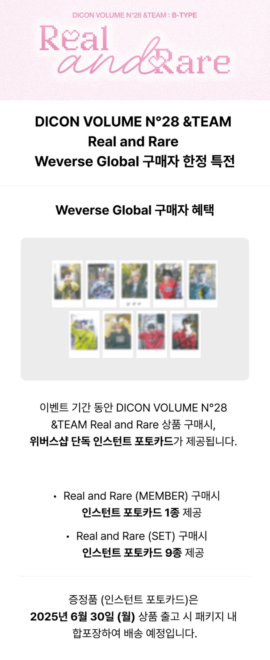 訂購贈送Weverse特典「拍立得小卡1張(照版本內附)」,以此類推。(送完為止)