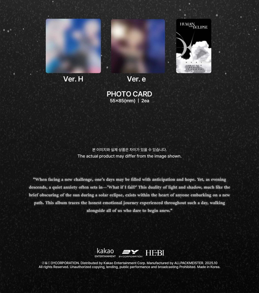 - PHOTO CARD : 55x85mm / 2張