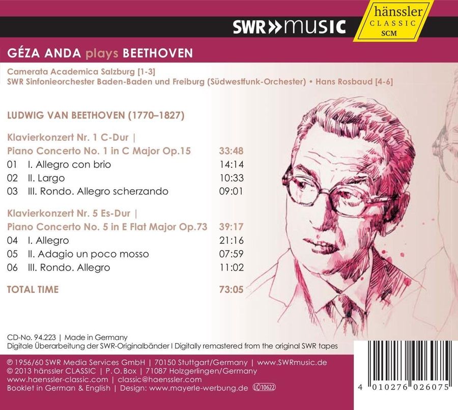 本張專輯為音樂史上重要的經典歷史錄音,收錄了蓋札.安達所演奏的貝多芬第一號、第五號鋼琴協奏曲。安達的演奏結合了精湛的技巧與歌唱般的旋律,有如人聲,並在他淵博的音樂學識下,展現出有別以往的精湛演出。