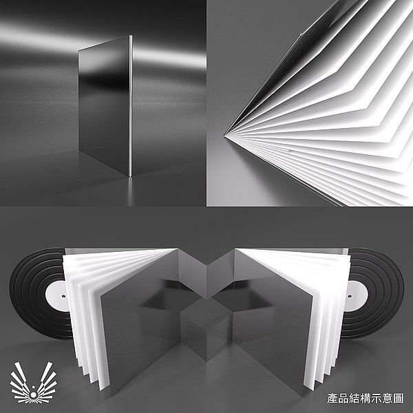 雙生火焰黑膠專輯裝幀設計《雙生火焰 TWIN FLAME》專輯的裝幀設計中,以「雙生」為靈感源泉,探索了對稱、鏡像、反射與維度提昇的深層意象。這是一個關於平行世界的故事:兩個靈魂在不同的維度中相互映照,在無限循環的時空裡尋找彼此。為了承載這個概念,專輯裝幀採用了M字型的立面結構,象徵著兩個相互交織的生命軌跡。M字型的尖端,如兩個宇宙的交匯點,巧妙地收納了詞本內頁,讓這份創作無論從左側翻閱還是從右側展開,都能完整地呈現。在這個雙向閱覽的過程中,你會感受到時間與空間的交錯,如同靈魂在兩個維度間的穿梭,體驗無限循環的對稱性。色彩的選擇也蘊含深意。黑與白代表著維度的交替、光與影的切換,是兩個世界的基底。紅色點綴著火焰的意象,象徵著雙生火焰那股永恆不滅的熱情與追尋。銀色特殊色與鏡面紙則增添了一種鏡像反射的效果,彷彿你透過它們,可以一瞥另一個維度的存在。整體的裝幀不僅是平面設計的延伸,更是從平面到立體,再揚升到更高維度的轉換。這不僅僅是一個專輯,它更像是一段靈魂的旅程,帶領我們穿越維度的界限,翱翔於哲理與意境的高空。整體專輯裝幀設計整體概念由平面揚昇至三維度立體結構,再加上內頁的鏡射表面, 無限投放映射出象徵時間軸的畫面,貼切符合專輯《雙生火焰 TWIN FLAME》概念及能量場。