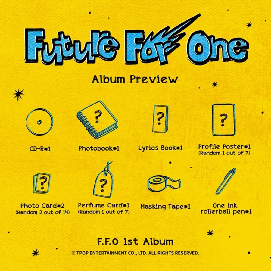 首張專輯《Future For One》共收了7首歌曲,包括五首來自節目時期的重新錄製作品、出道曲「腦袋漂流記」,以及首度曝光的全新歌曲「大丈夫」。整張專輯融合了Trap、EDM、Funk、Disco、搖滾等多樣音樂風格,呈現出F.F.O的音樂多樣性與無限潛力。
