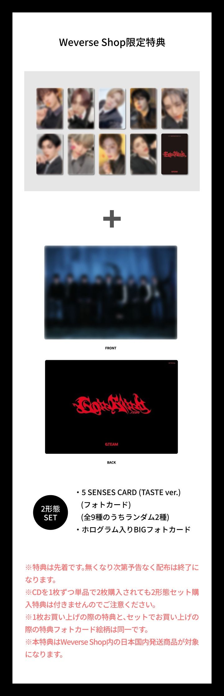 訂購Weverse Shop JAPAN通路送Weverse Shop JAPAN限定特典「5 SENSES CARD(TASTE ver.)隨機小卡2張(9款隨機2)+閃卡1張」