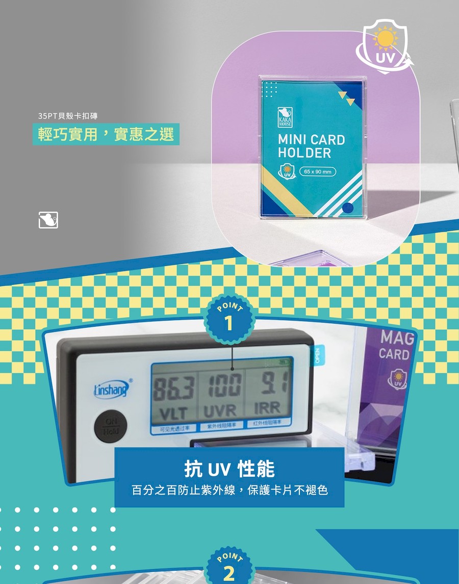 採用專業材質,可有效隔絕100%紫外線,防止卡片因長時間暴露而褪色或損壞。