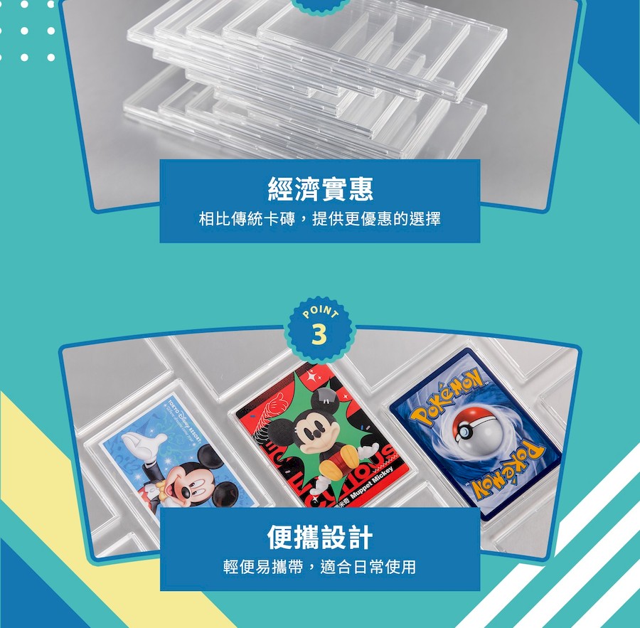 • 適用尺寸65 x 90 mm以下所有卡片,如收藏卡、遊戲卡、明星卡等。