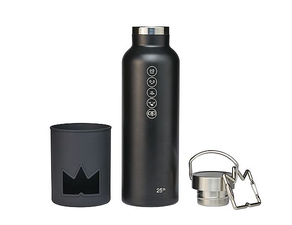 材質:瓶身-內外304不鏽鋼,瓶蓋-304不鏽鋼,墊圈-矽膠; 矽膠止滑套-矽膠,掛勾-鋅合金