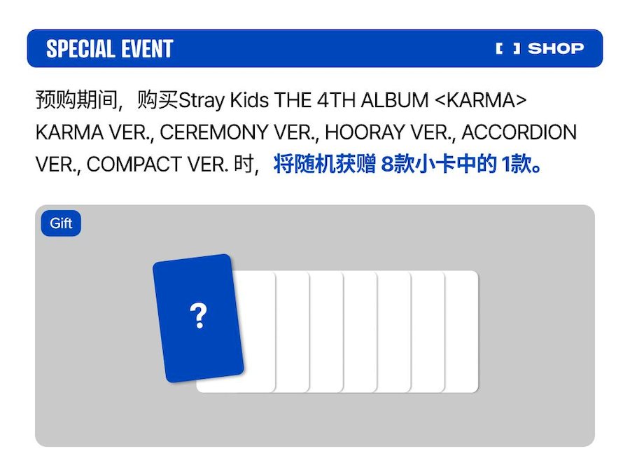 訂購8張JYP官網 ACCORDION版送JYP官網特典「隨機小卡8張 + 明信片1張」