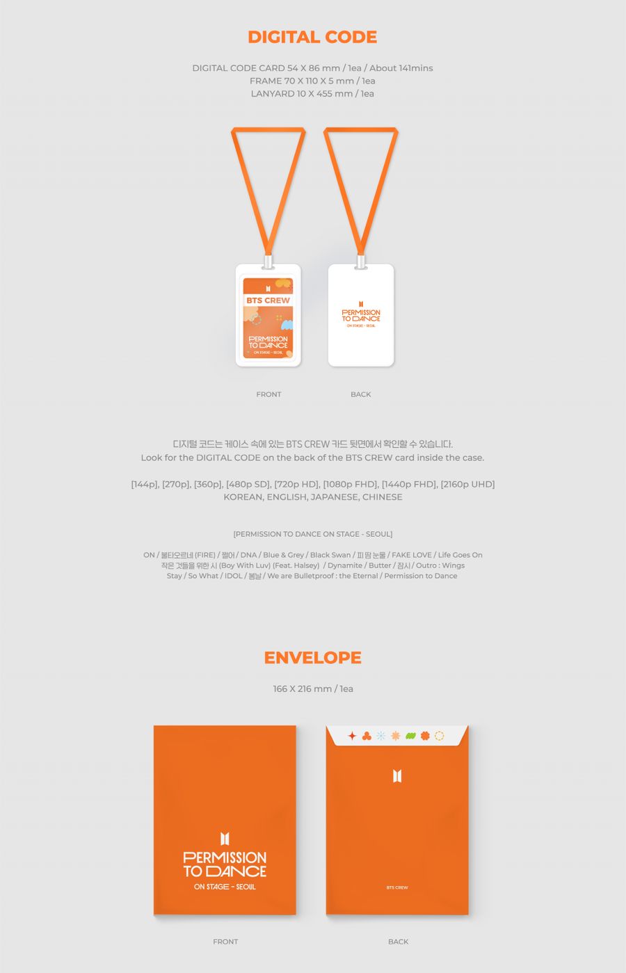 - DIGITAL CODE CARD Size : 54x86mmㅣ About 141mins