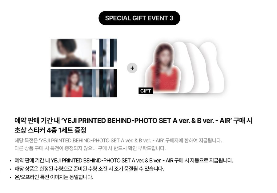 訂購(A ver. & B ver.)幕後花絮照組,贈送「貼紙4張(1組)」,以此類推。(送完為止)