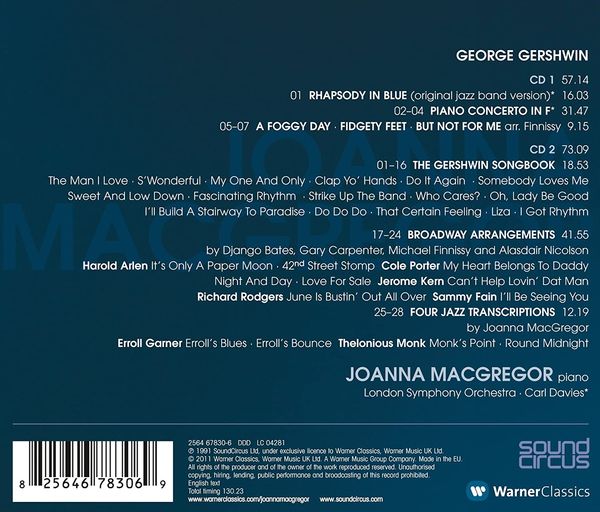 這份蓋西文的曲目是麥葛瑞格在一九九二年為Collins錄下的,片中的藍色狂想曲採用的是原始的爵士樂團版本,在當時非常的轟動,備受留聲機雜誌特別推薦。在第二片CD中則是選了二十多首與蓋西文同樣是出自百老匯知名作曲家的柯爾波特和厄文柏林等人的暢銷歌曲,改編成和蓋西文歌曲集一樣的鋼琴獨奏,這些曲子不像蓋西文歌曲集那麼常被改編成古典鋼琴彈奏,因此形成了一份非常獨特而有特殊百老匯風格的獨奏鋼琴曲目。