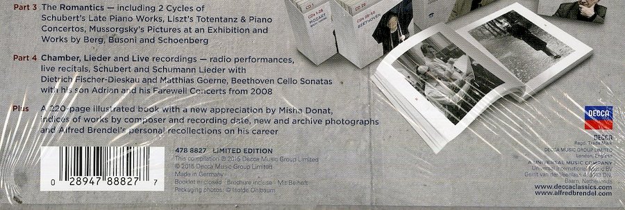 此為首度發行的布蘭德爾大全集,專輯附錄一本200頁的手冊,包含曲序與作曲者索引,以及許多難得一見的檔案照片,並由布蘭德爾欽點的作家Misha Donat負責撰寫解說。